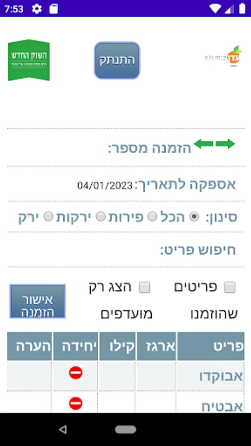 bar. Eden Peri Tov Ltd. - an application for orders for customers of B.R. Eden Peri Tov Ltd