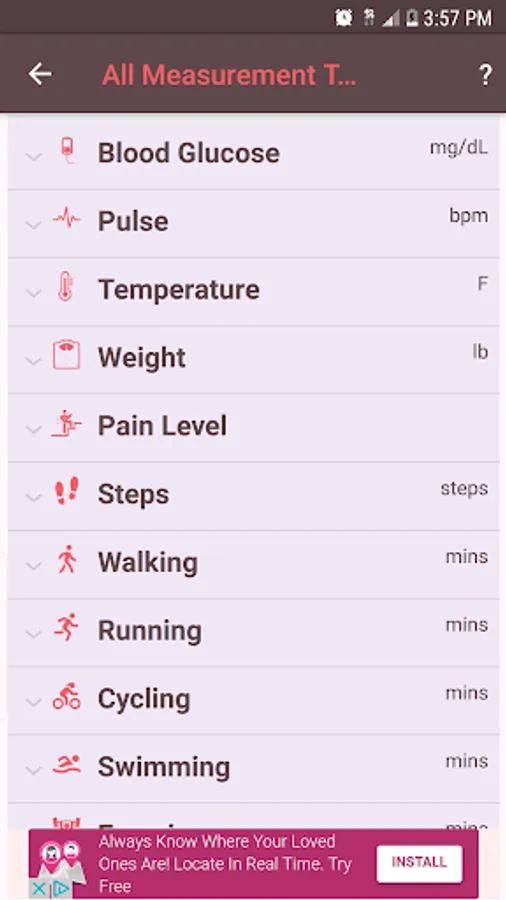 All you have to do is select the Measurement Type, e.g. Walking and then press the "Play" button and the App will start logging the time (you can also Pause the activity), once you are done, select the Notification and then press the "Stop" button.