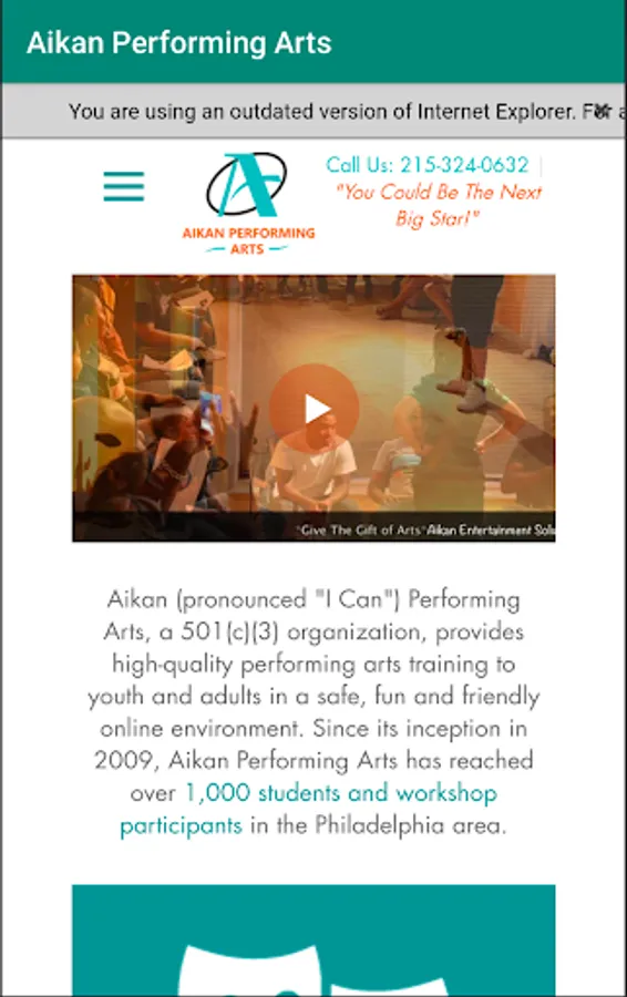 Aikan (pronounced "I Can") Performing Arts, a 501(c)(3) organization, provides high-quality performing arts training to youth and adults in a safe, fun and friendly online environment. Since its inception in 2009, Aikan Performing Arts has reached over 1,000 students and workshop participants in the Philadelphia area.
