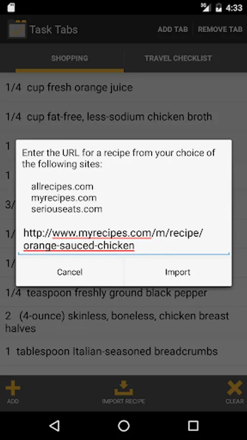- Import ingredient lists from your favorite recipe sites for a fast and easy shopping list!