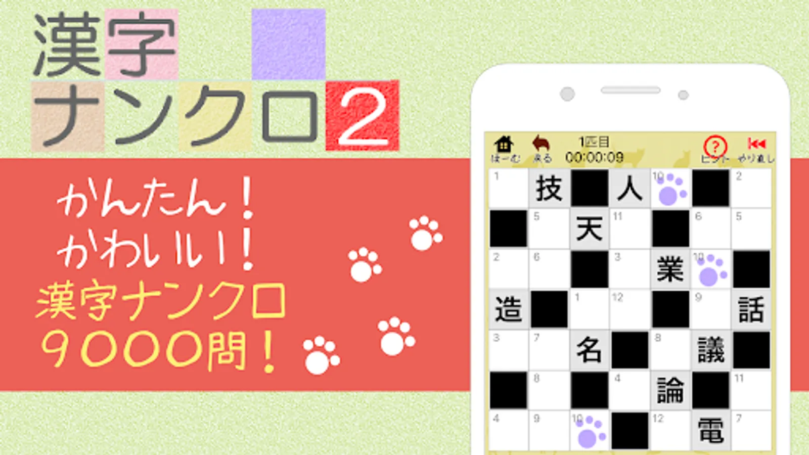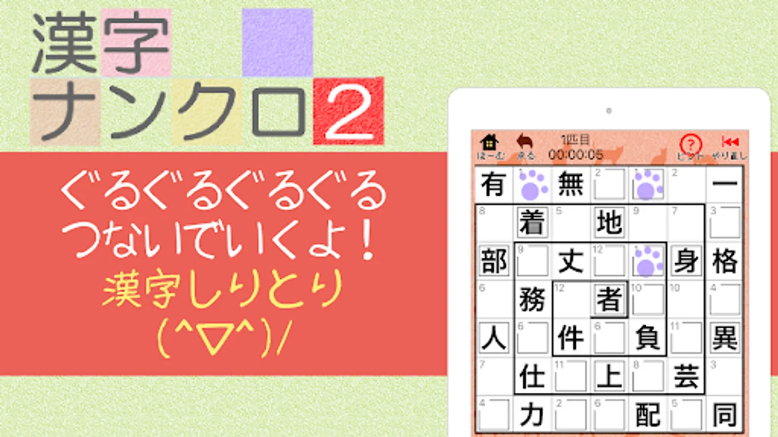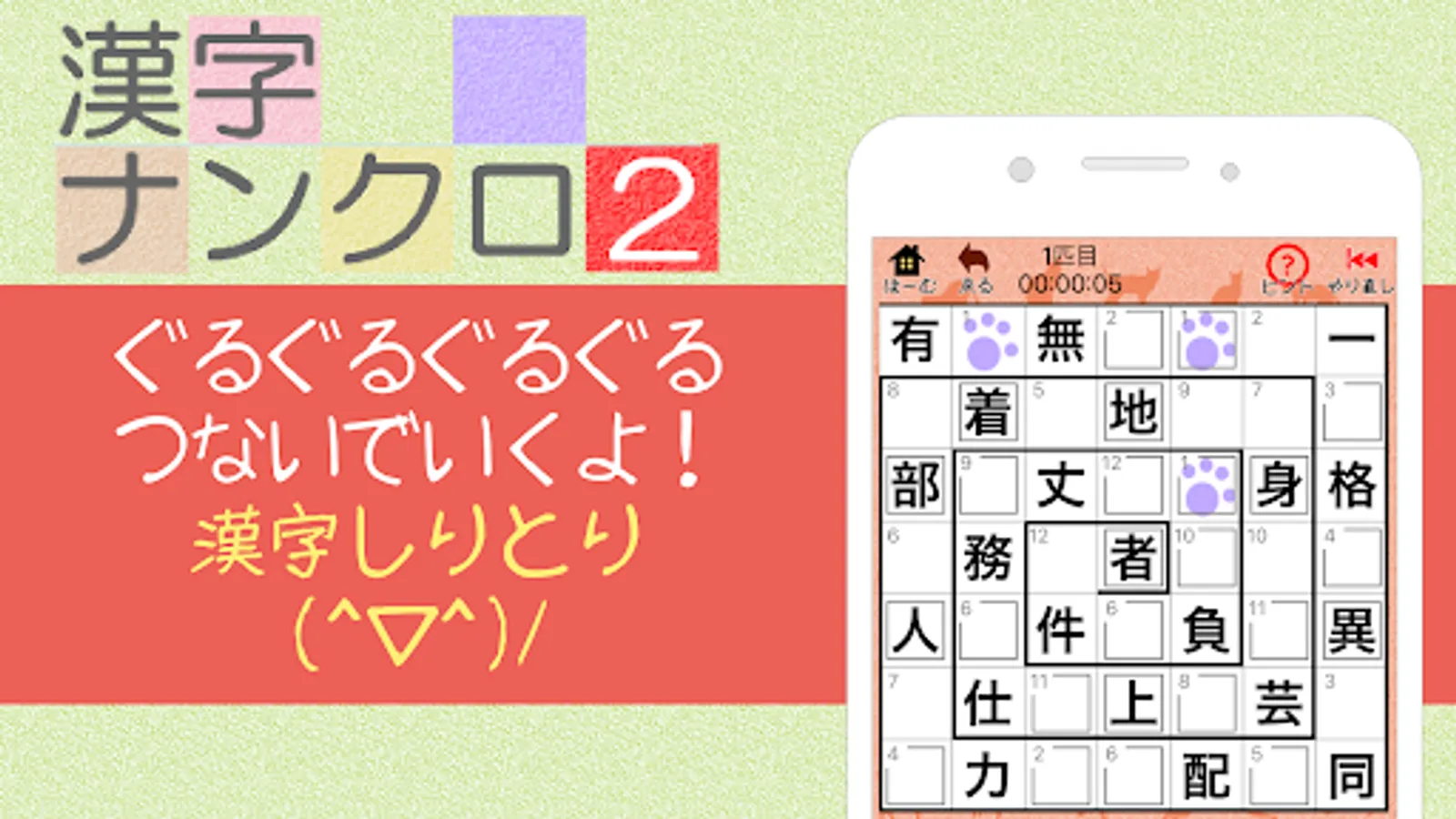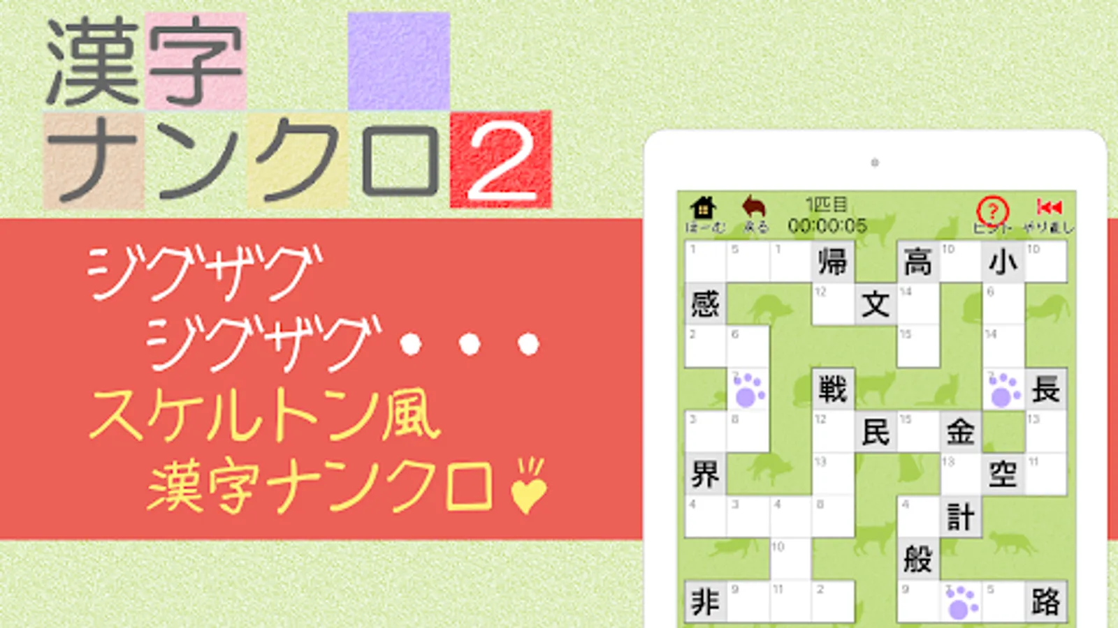 Each puzzle is a classic kanji puzzle game that fills the squares on the board with kanji ✏️