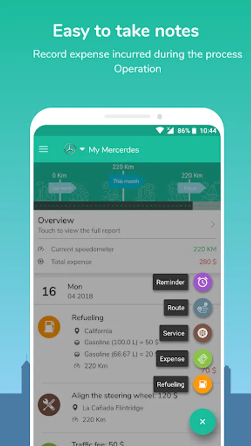 Car Manager is the application to handle all information and expense about your car. With this application all refueling, maintenance and expenses are recorded. With intuitive reports, you can quickly track the spending situation, expense incurred over time.