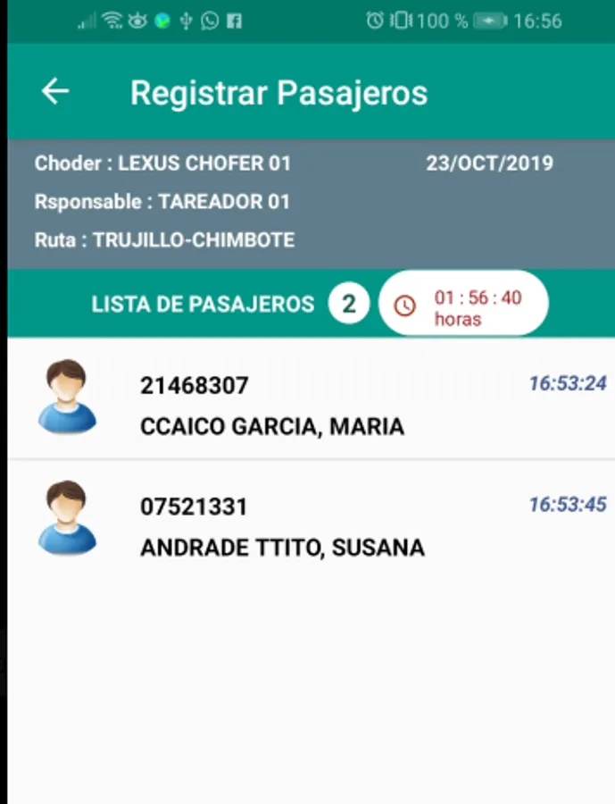 This app allows us to control the trips made by a transport unit, through a barred reading of the passengers' ID. These help us maintain the number of passengers who board the units.