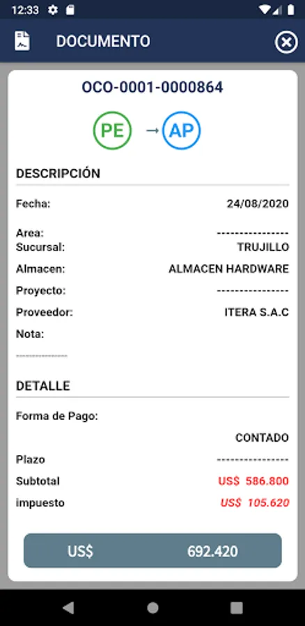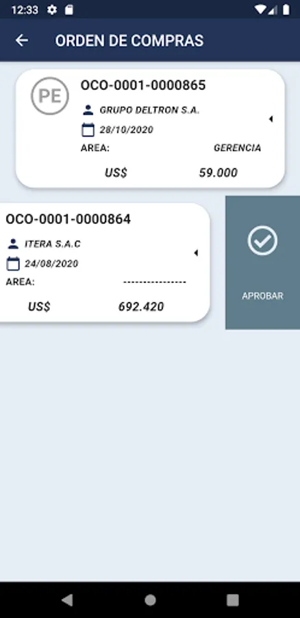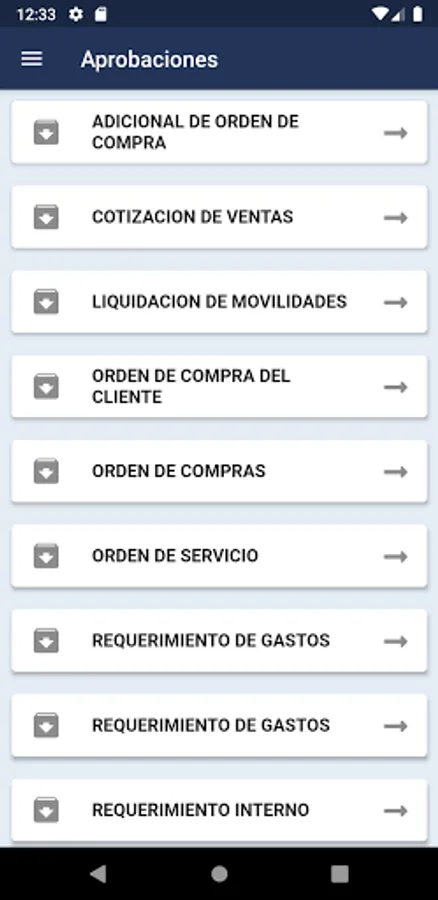 Application to make approvals of the various documents configured from the Nisira ERP.