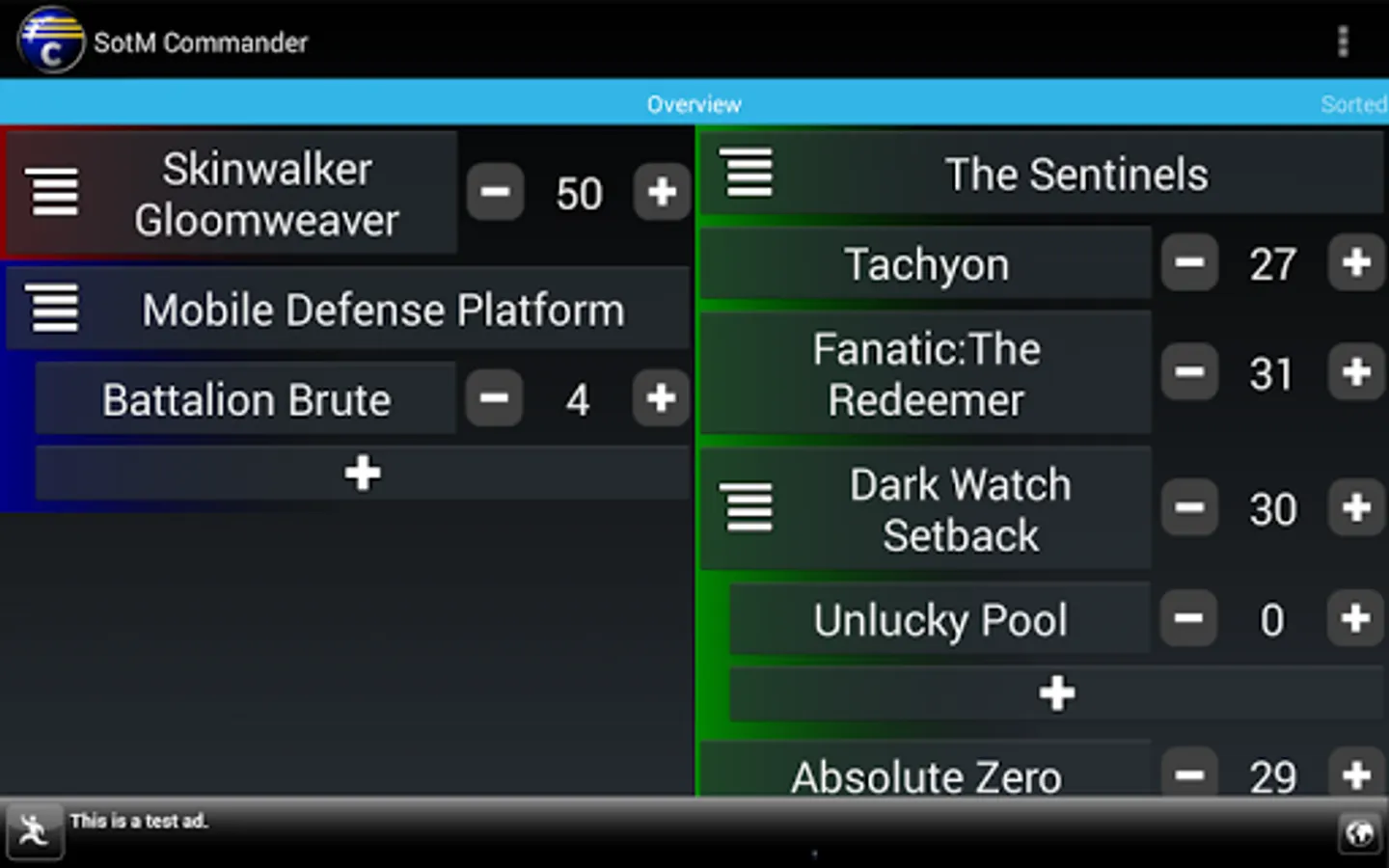 SotM Commander is a companion app for Sentinels of the Multiverse, the cooperative comic book card game. This app contains the HP of all currently available SotM characters (including Vengeance, Rook City, Infernal Relics, Shattered Timelines, Wrath of the Cosmos, and all the Promo Cards), and we intend to keep it updated with any new expansion releases, all for free, of course.