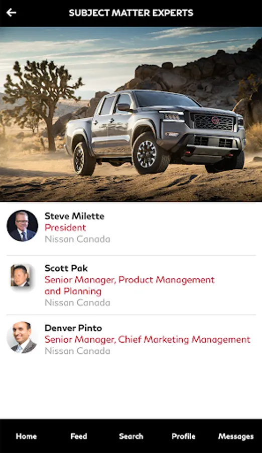 Invite only app for Nissan Canada media events and meetings. An app to help support Nissan events by providing event information and ways to engage with various Nissan event experiences.