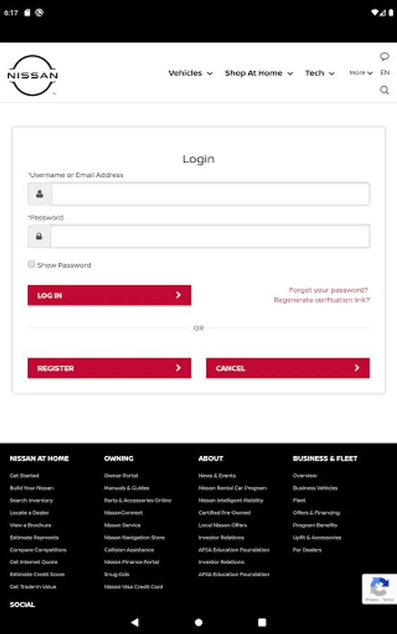 To gain access to your account, NMAC account holders may either register or enter login information from an existing account registered on www.NissanFinance.com.