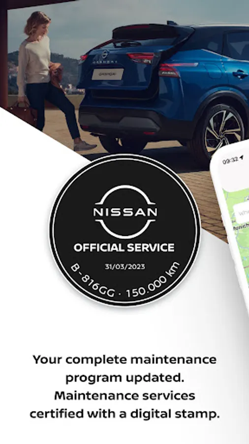 - Maintenance service and digital stamp. Keep your Nissan’s servicing schedule up to date, thanks to the maintenance programme integrated in the app. Ask for a service appointment.