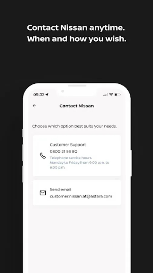 Find an authorised Nissan Workshop or Dealership using the app’s map or powerful search engine.