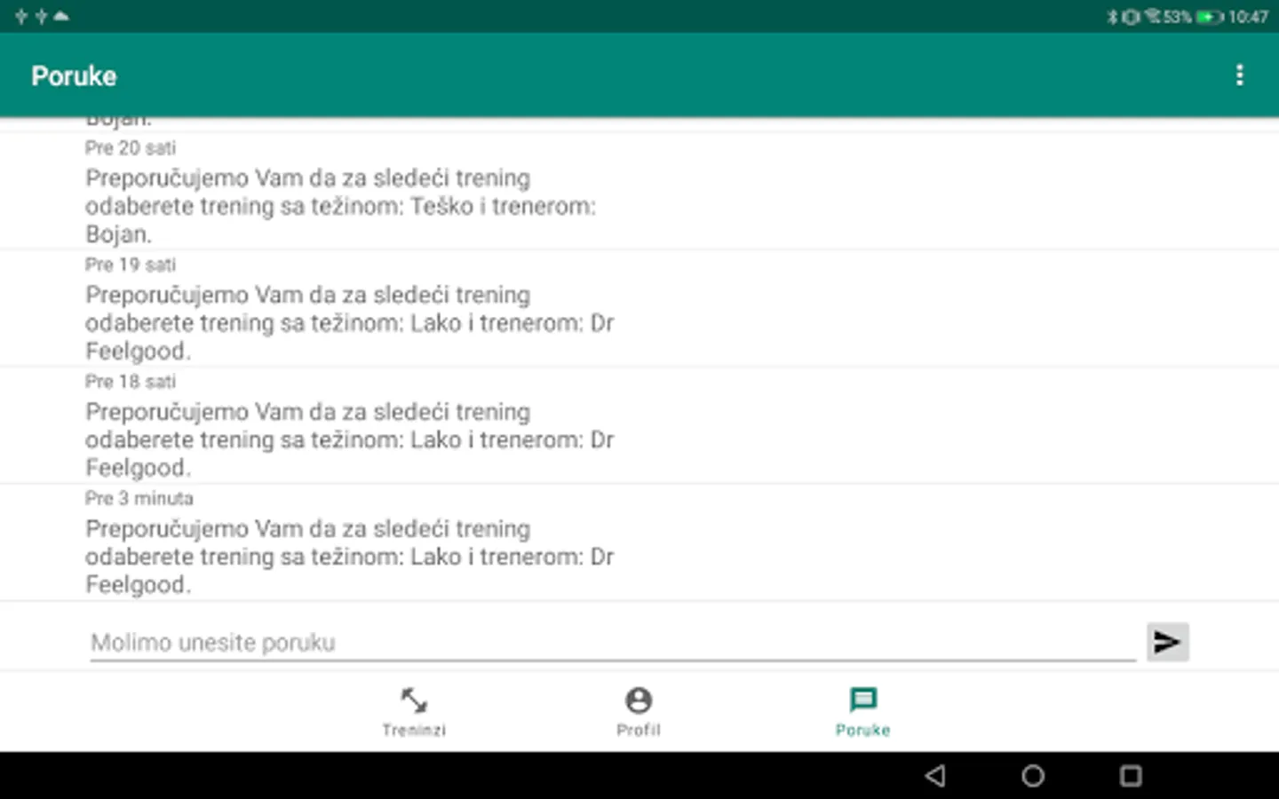 Zona Zdravlja user application for executing training and communicating with trainer.