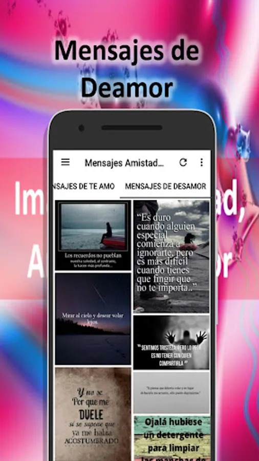 Welcome to the application that will allow you to View and Share Images with beautiful phrases of Friendship, Love, I Love You, even messages of sadness or heartbreak .