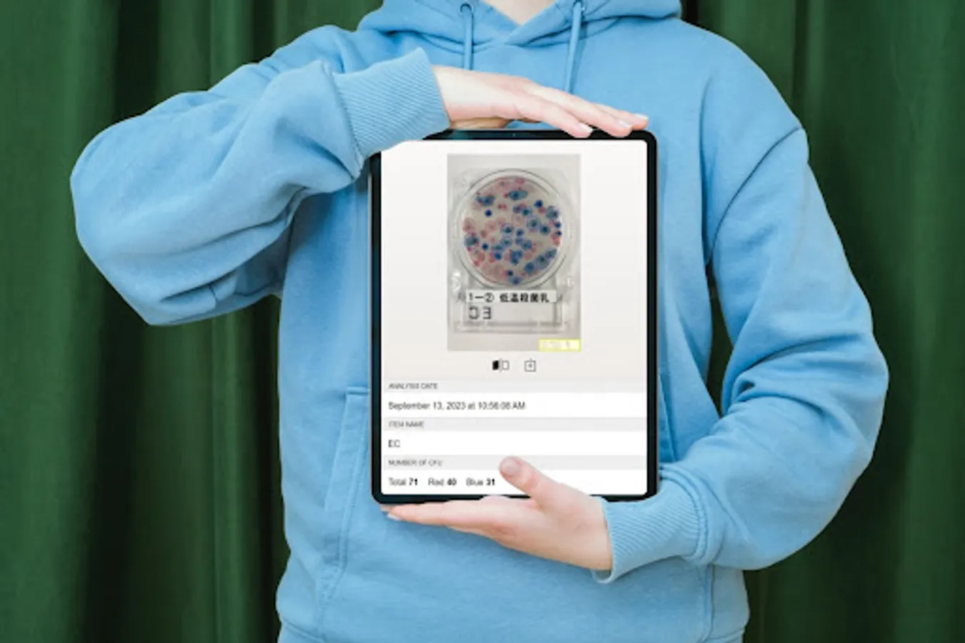 The safety and security of foods are important for humans to live. The examination of bacteria in foods and drinking water can be easily available to everyone. The product supports human life in any place and region. Making it easy bacterial counting, by using a familiar mobile device for everyone around the world, trying to promote operational efficiency using the global cloud and AI, adding value to CompactDry™ to play a role in the improvement of the QOL, keeping these ideas in mind we have developed the application for everyone engaging on health and safety of food.