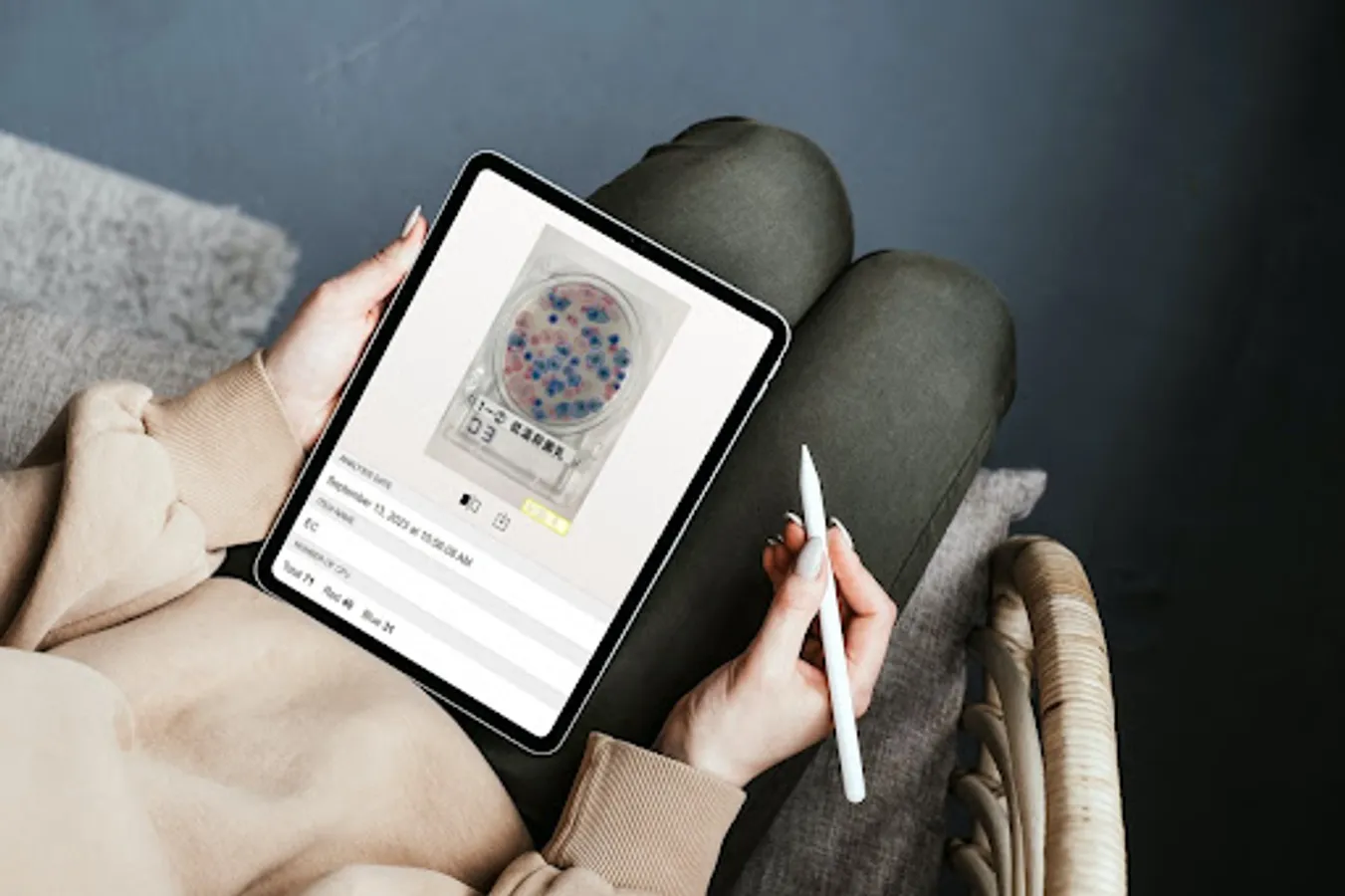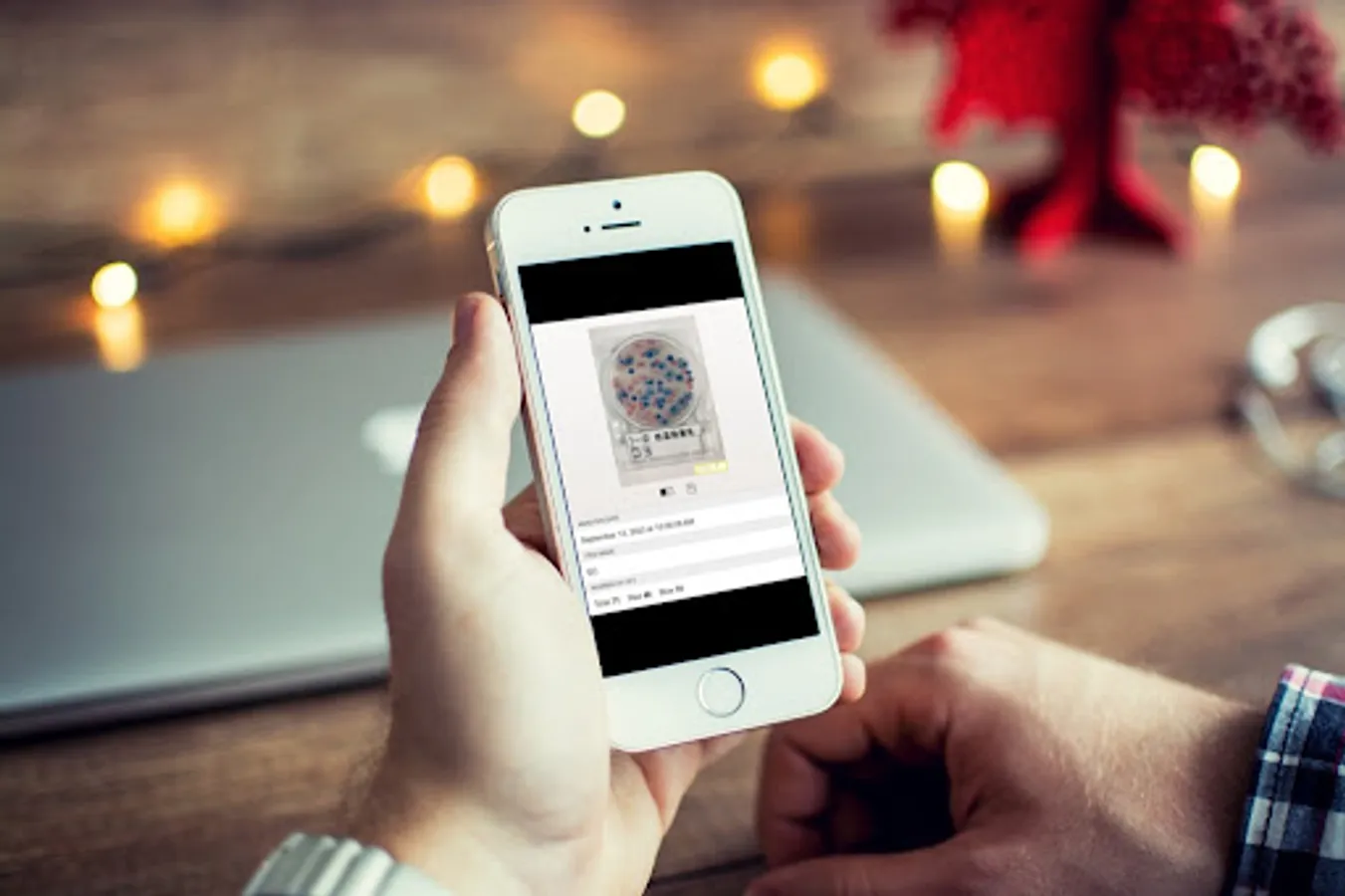You can easily determine the bacterial (colony) count cultured in CompactDry™ using your smartphone.