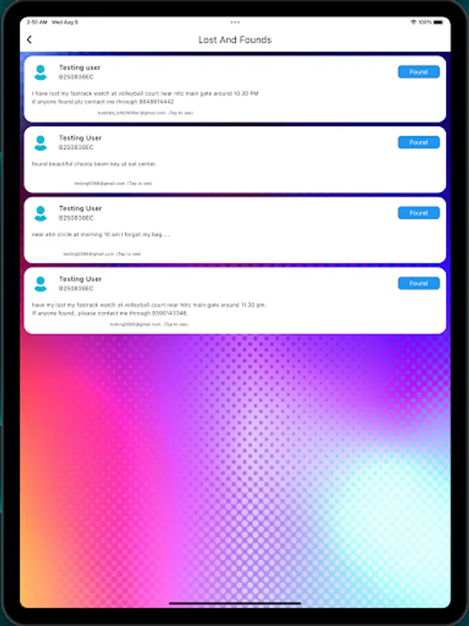 This app has been designed to communicate between the students at different place and make more convenient and enjoyable. This app has been developed considering the issues and problems faced by students in their university. The app is user-friendly and offers a good experience. With just a few taps on your mobile device, you will be able to select the option whatever you want , and you can also share you issues and lost and founds.