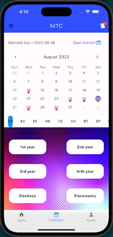 Upcoming Events: The app also provides details about all upcoming events, including cultural fests, inductions to various clubs, sports tournaments, and other exciting activities that you wouldn't want to miss.