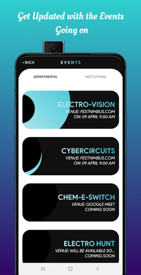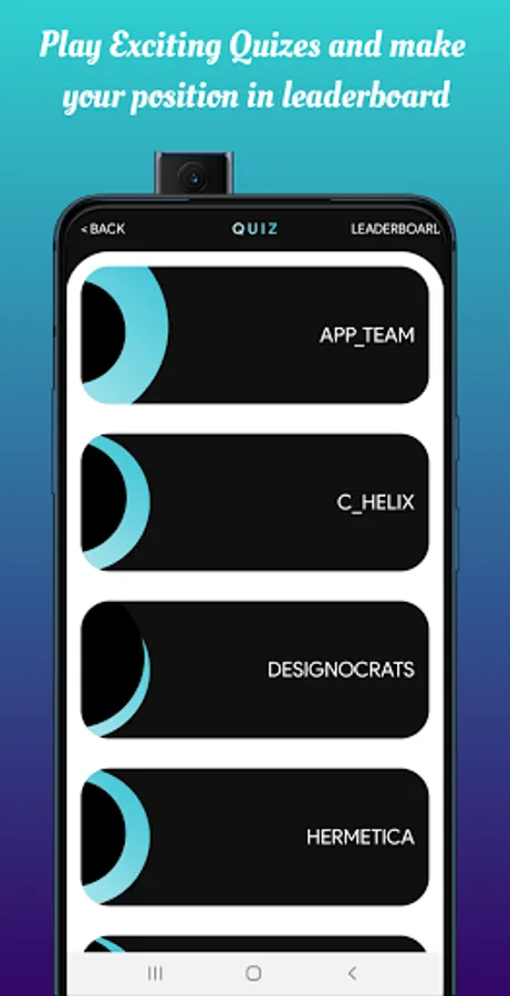1. Despite giving the information related to the fest, there is an exciting feature in the app that attracts most of its users, that is the quiz. The quiz is departmental-wise. The student who tops the leaderboard is the winner.