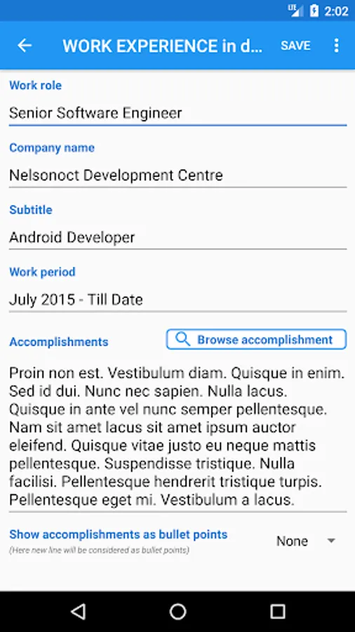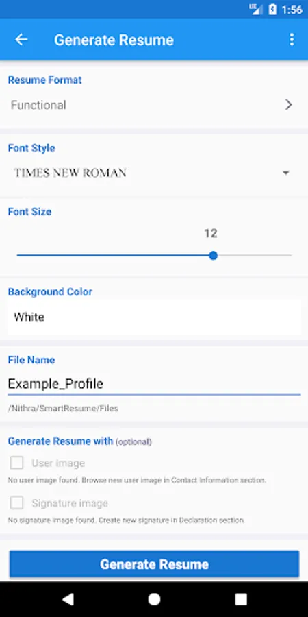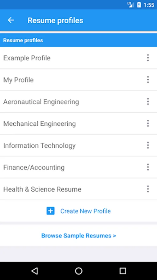 Make my resume app free, free resume maker app comes with Sample Profile which includes predefined data in it, which allows you to create resume very easy with this resume creator app.