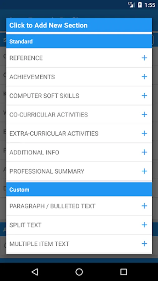 Smart Resume Builder, a professional resume maker allows you to add as many sections as needed and you can also edit the section heading in this perfect resume maker.