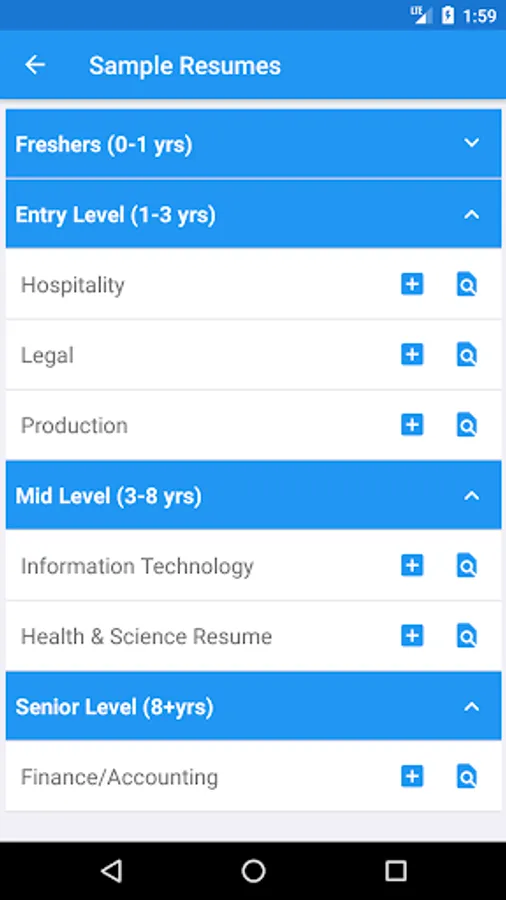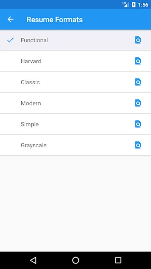Smart Resume Builder CV Free Jobs has different types of Professional Resume Formats are available in resume creator app. You can also change your font size and style as desired in resume creating app. In resume application there are several resume formats included you can use them to help you create a great looking Resume CV to help you in your job search.