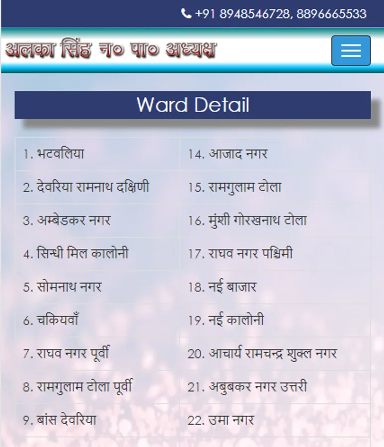 Alka Singh Nagar Palika Adhyaksh Deoriya , Compalint Form , About Deoriya , Services , Contact Us, Photo Gallery , Ward Details.