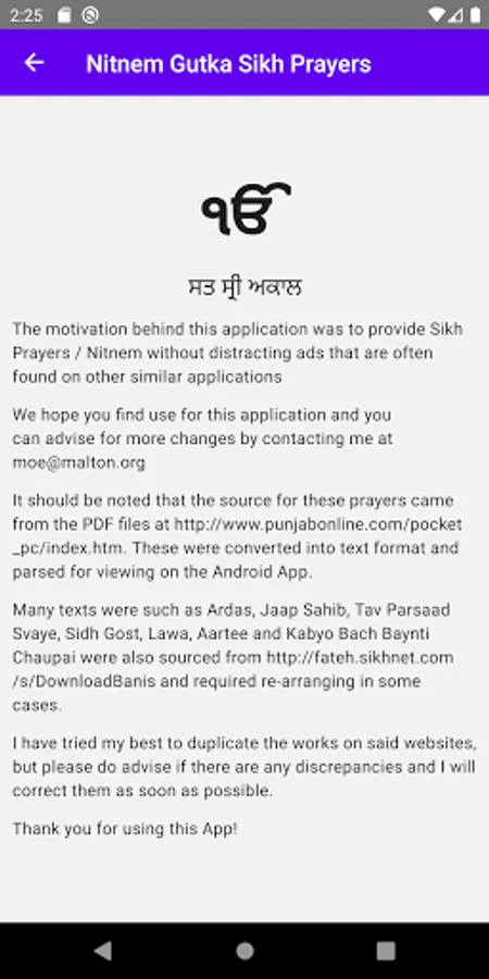 The motivation behind this application was to provide Sikh Prayers / Nitnem without ads which are very distracting and often found on other similar applications. This application is and always will be ad-free.