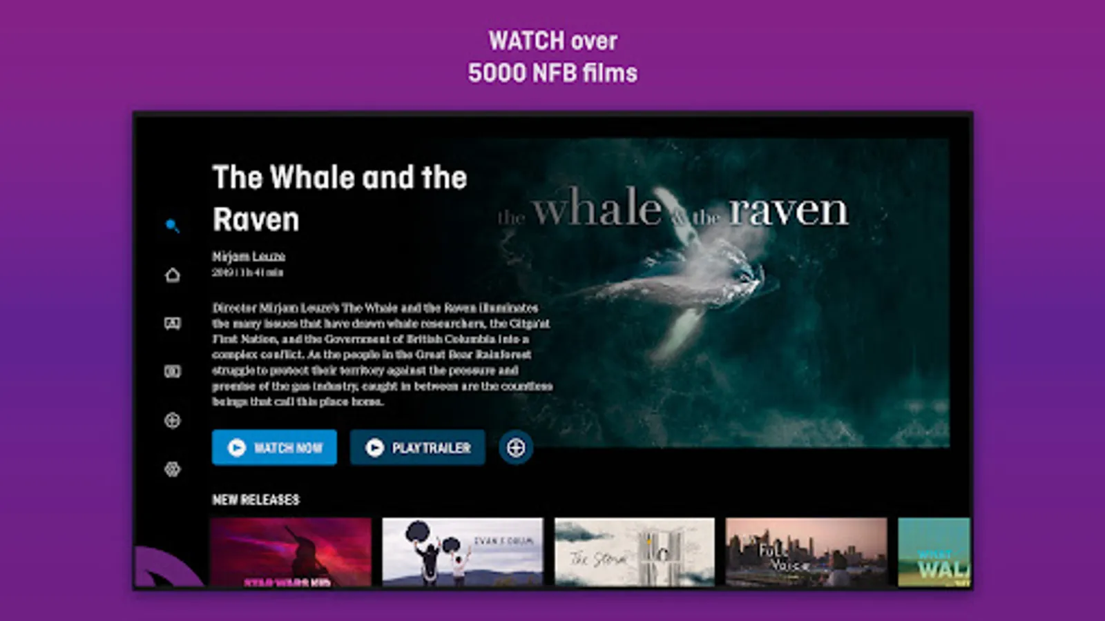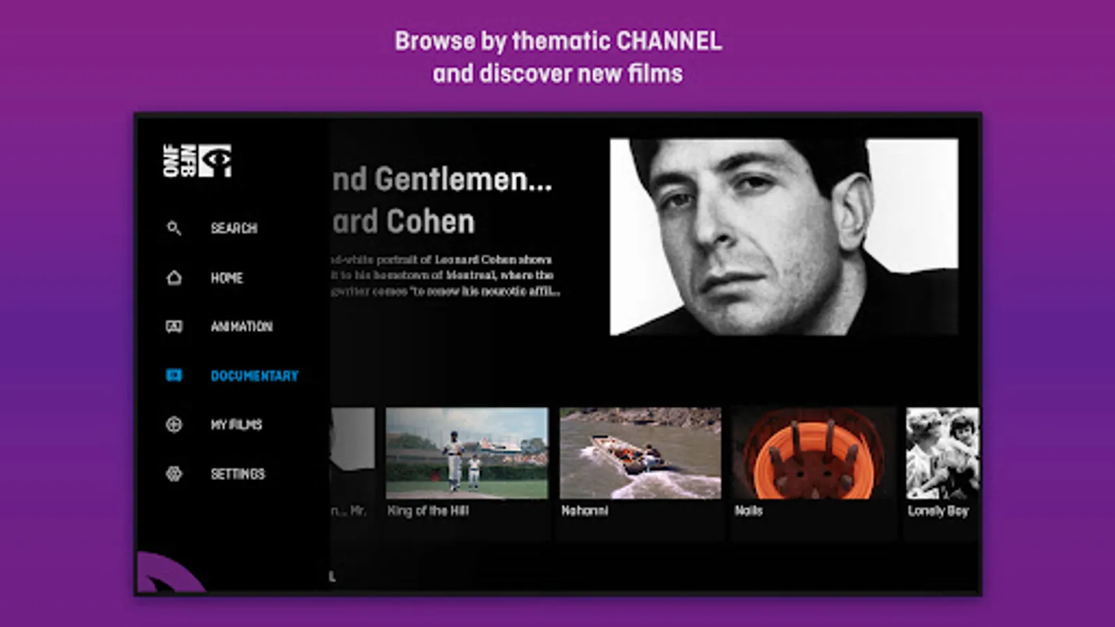 Enjoy thousands of NFB films – award-winning documentaries, animations, short and feature films – for free on your TV