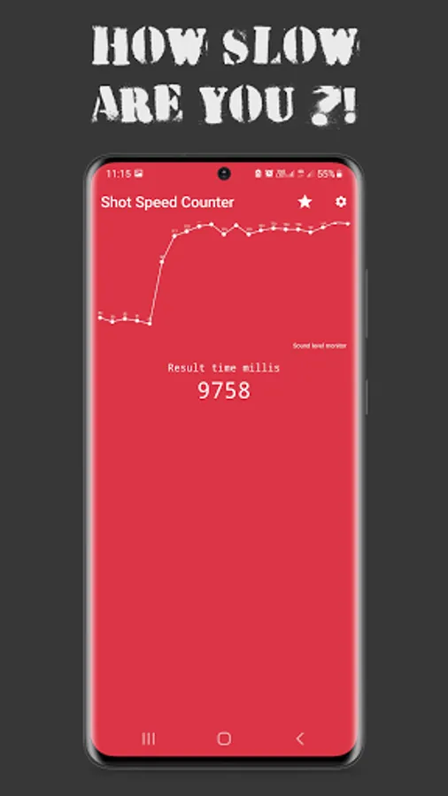 Shot Speed Counter app is app for measuring gun draw speed. It measures speed from sound level. This sound level is adjustable from app settings.