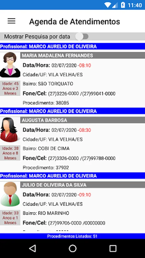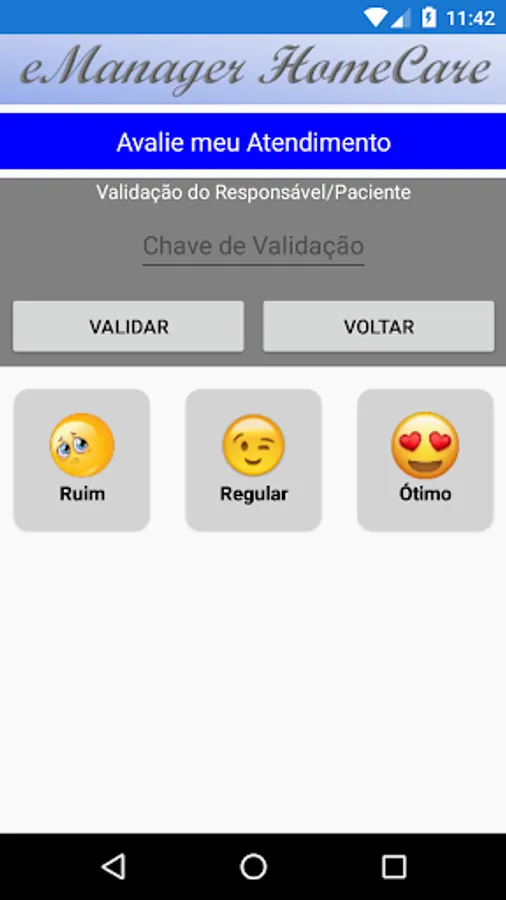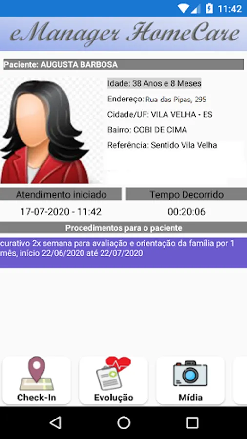 In this application, the user will have access to the attendance schedule previously registered for his user in the eManager Desktop, thus, the user will perform the service, evolution of the service, send photos of the patient or details regarding the service.