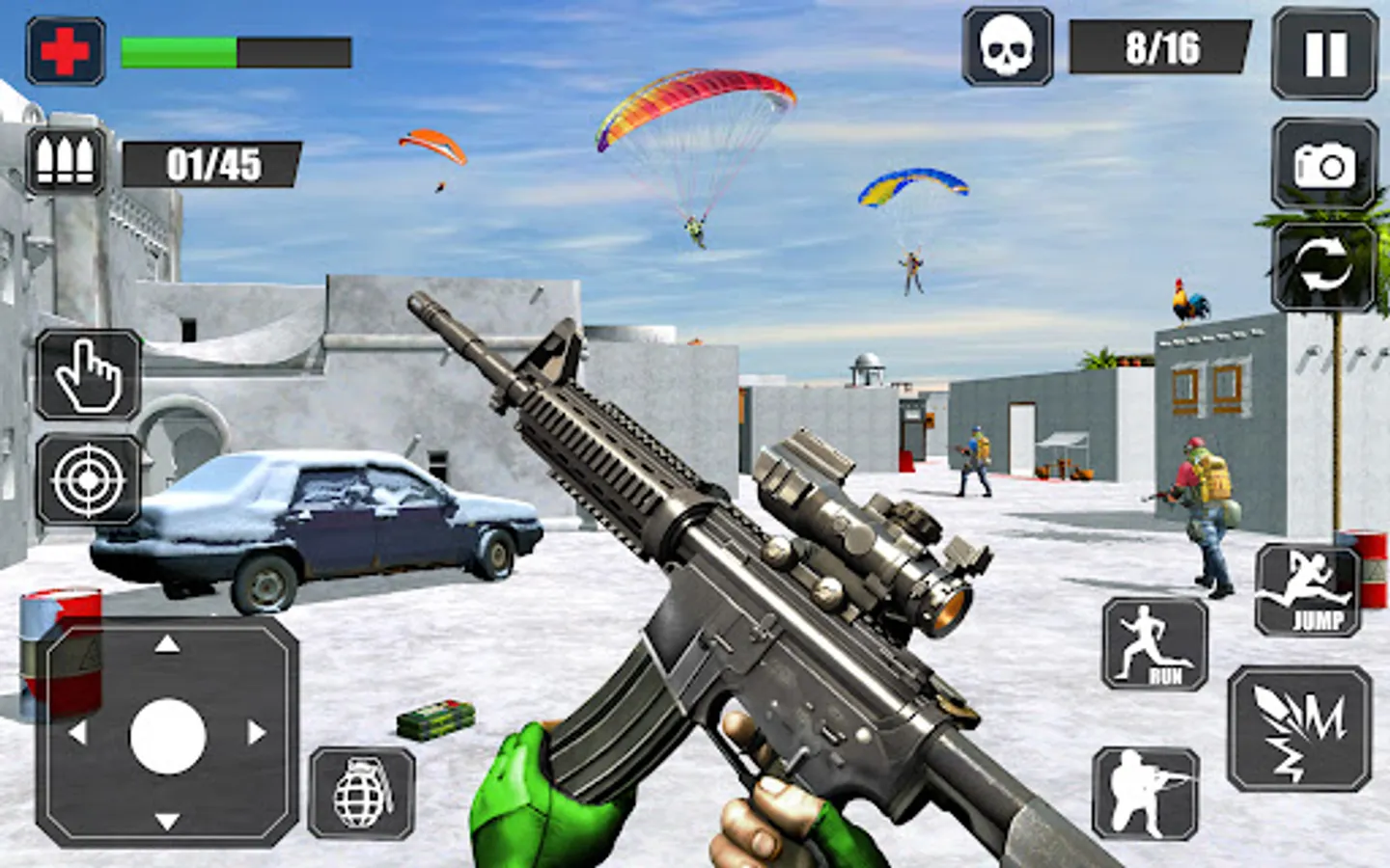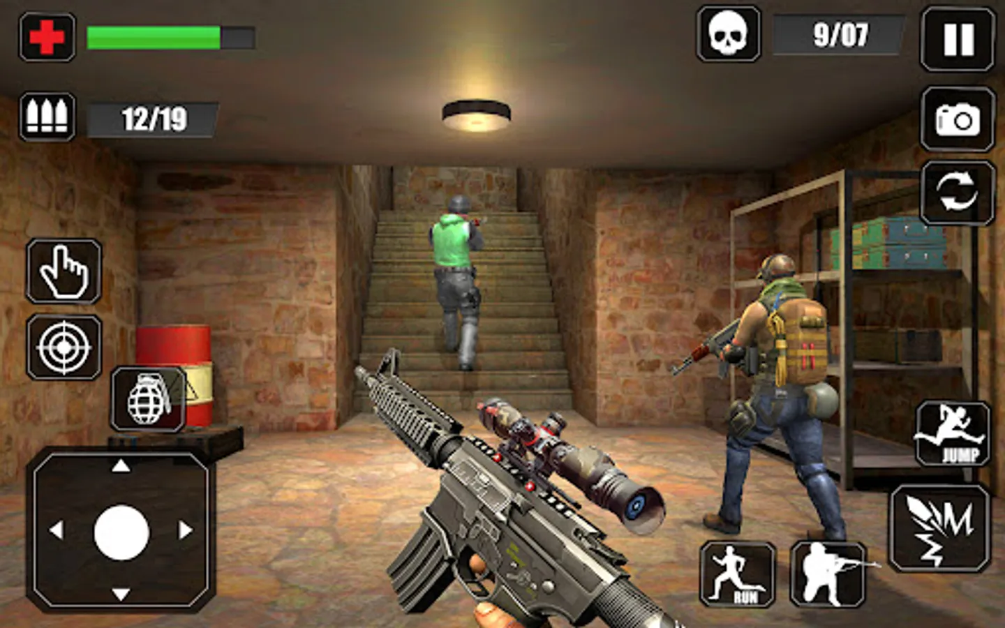 Counter Terrorist Gun 3D Game Shooting Games 3D, there are many interesting levels in which you can complete multiple missions. First, collect all the weapons in the base camp and find the locations of the enemies, perform multiple actions to eliminate all the enemies one by one, the controls are very easy and smooth.