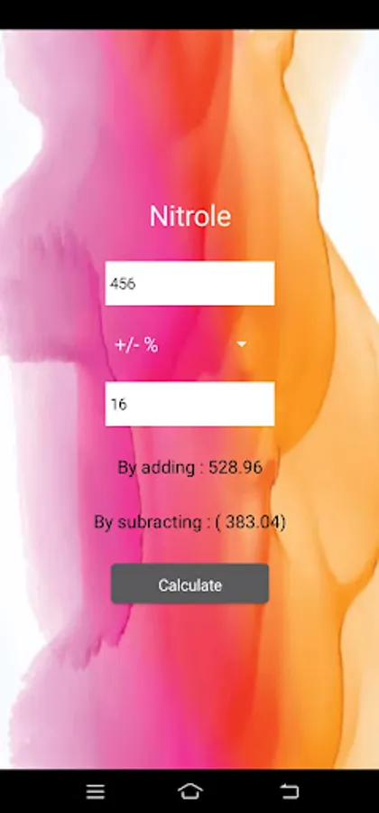 Step 5: Click the calculate button then the app will show the result as you selected (+/- normal or +/- %)