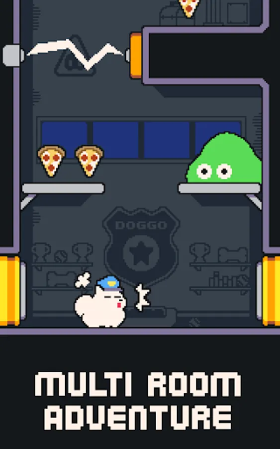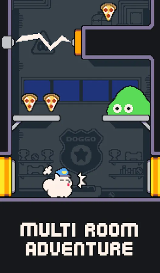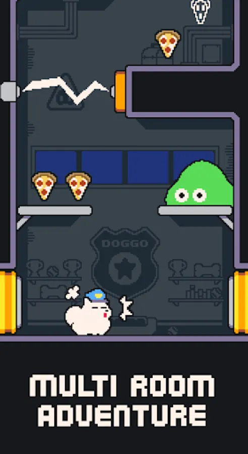 Collect all the pizza you can, but beware the watchful eye of the planet's patrol officer!
