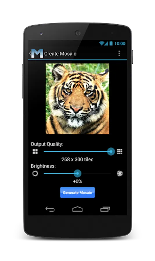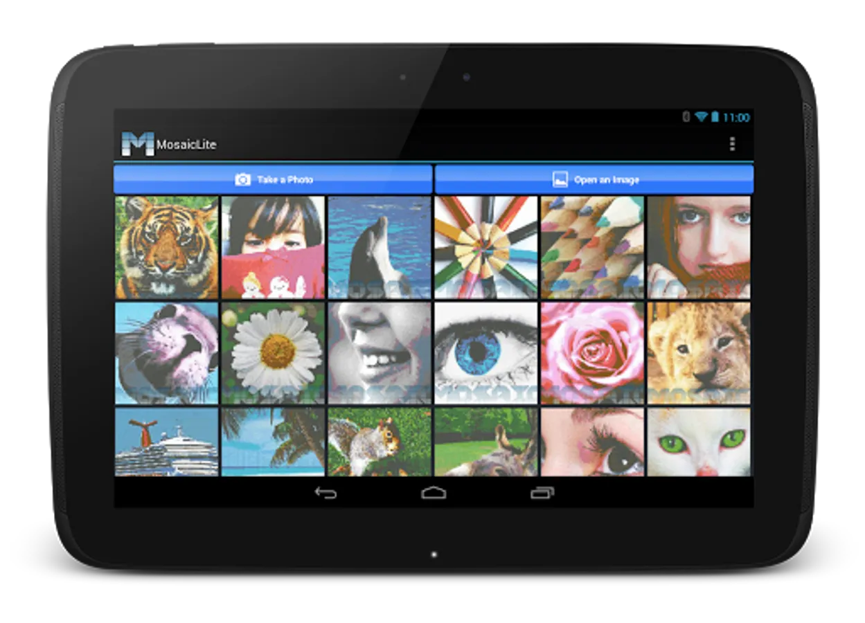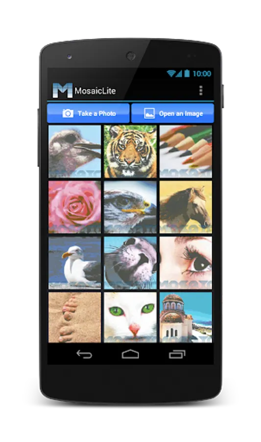 The advantage of Mosaic over other similar applications is that you don't need to have thousands of photos on your android device to produce an amazing Mosaic. You can just snap a single photo or select a single image from your gallery and Mosaic will produce an impressive artistic composition.