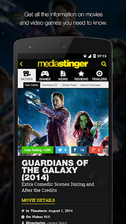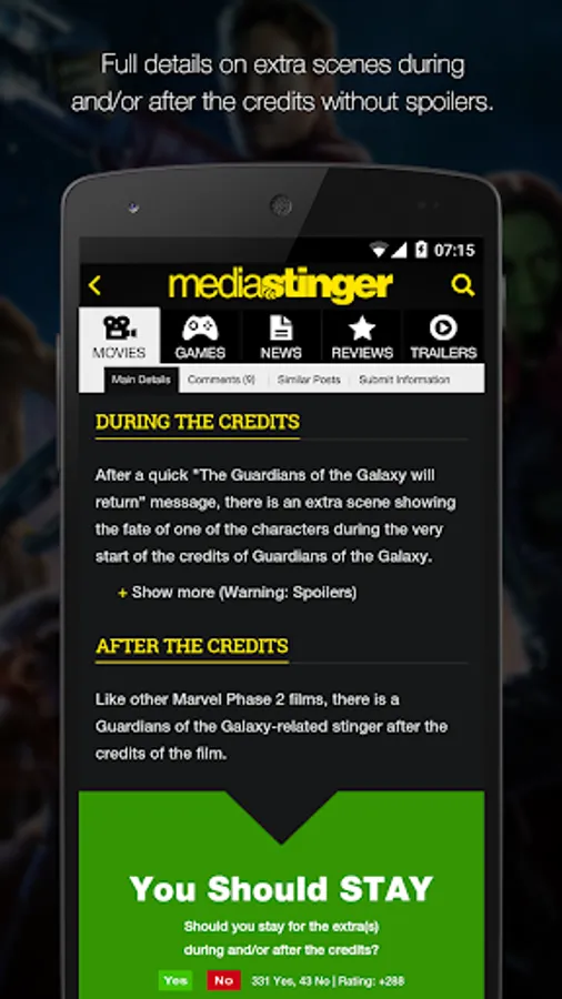 "'Oh man! Did you see that extra scene after the credits? It was great!' Ever heard those words in the lobby after you'd walked out before the credits finished rolling? MediaStinger helps avoid that sort of disappointment." -Lifehacker.com