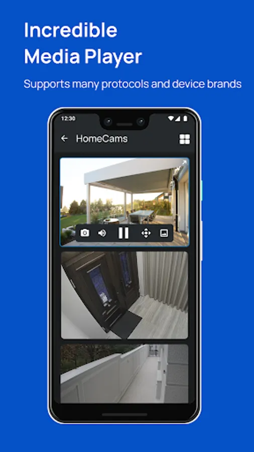 With UniCam app, you can connect to any ONVIF, RTSP, MJPEG, and HLS IP Cameras using the Supercharged Media Player. You can mix and match streams the way you like it to view multiple cameras at once. The app also features the ability to control your IP Cameras through the Pan, Tilt, and Zoom feature, and playback recorded events from your ONVIF IP Cameras with an easy-to-use interface.