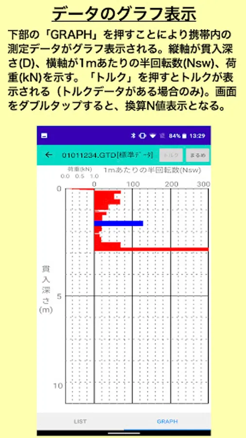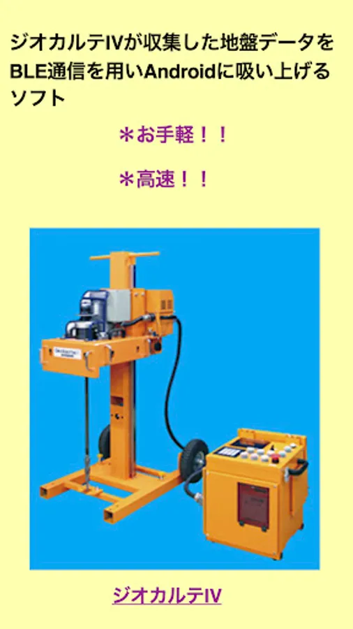 Nitto Seiko Co., Ltd., which boasts the No. 1 track record in geotechnical investigations, can communicate with the latest model "Geo Carte IV" of Geo Carte and smartphones, download measurement data, and transfer necessary data by e-mail.