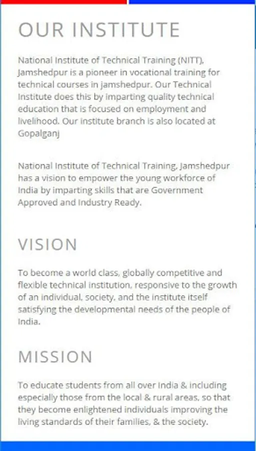 National Institute of Technical Training (NITT), Jamshedpur is a pioneer in vocational training for technical courses in jamshedpur. Our Technical Institute does this by imparting quality technical education that is focused on employment and livelihood. NITT Jsr is a pioneer in vocational training for technical courses in jamshedpur. Our Technical Institute does this by imparting quality technical education that is focused on employment and livelihood.