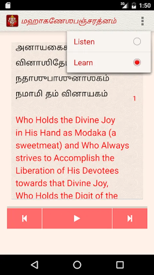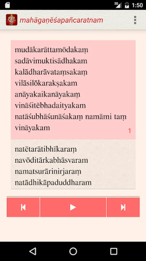 The Ganesha Pancharatnam app, under the NityaŚlokas collection, is a creation of ThirdEye Apps.The app has been created with the intention of making it easier for children and adults equally, to learn traditional slokas (verses) and includes the following features