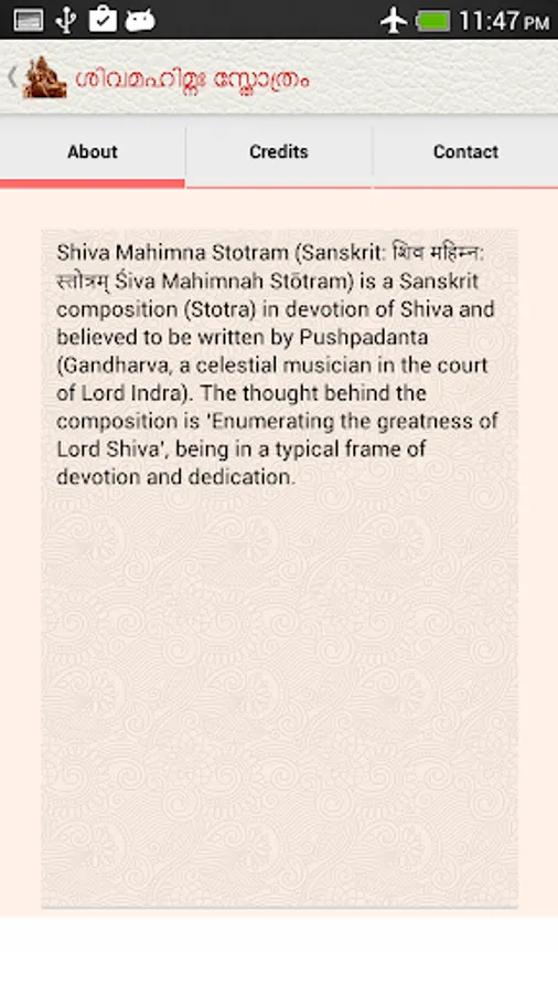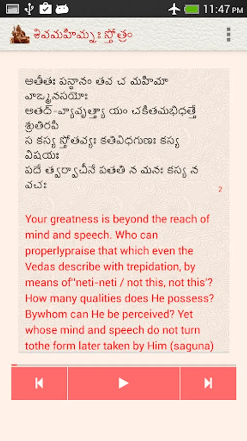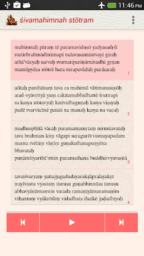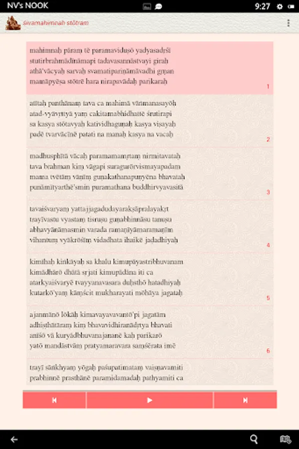 The Siva Mahimna Stotram app, under the NityaŚlokas collection, is a creation of ThirdEye Apps.The app has been created with the intention of making it easier for children and adults equally, to learn traditional slokas (verses) and includes the following features