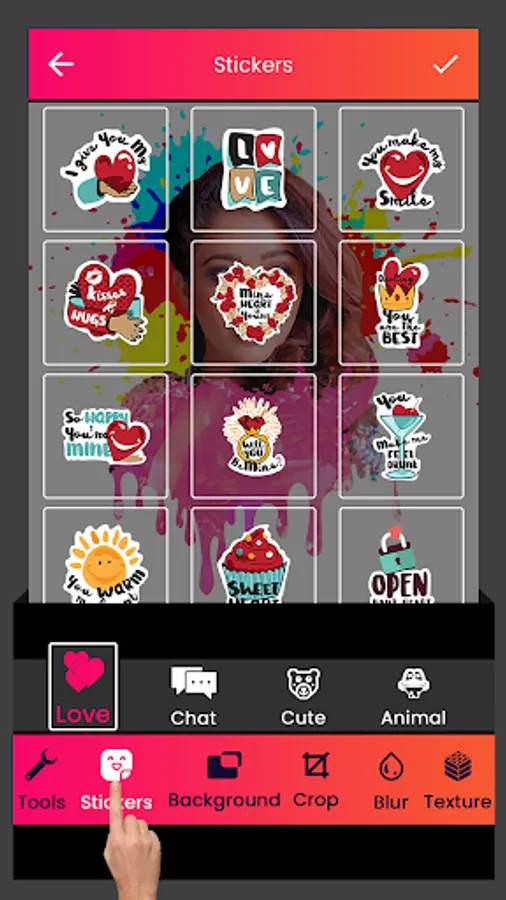 → Add Sticker: Love, Chat , Cute & Animal Category.