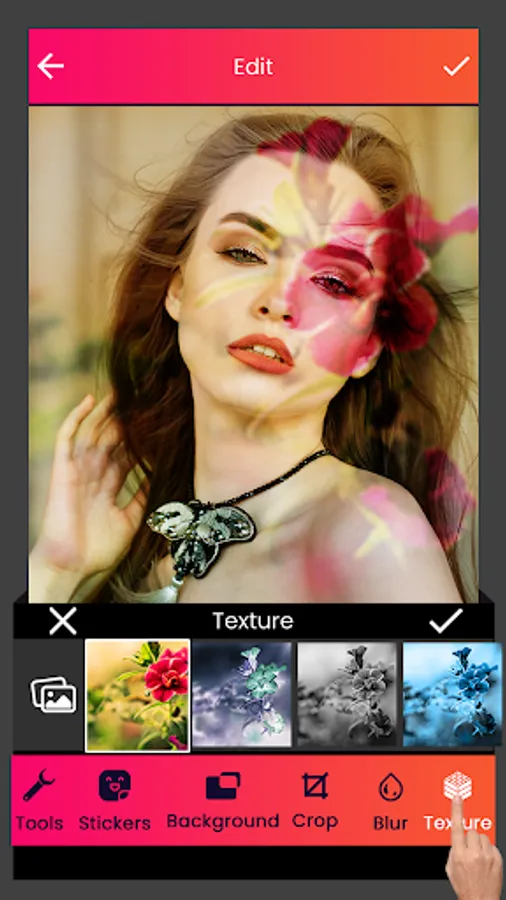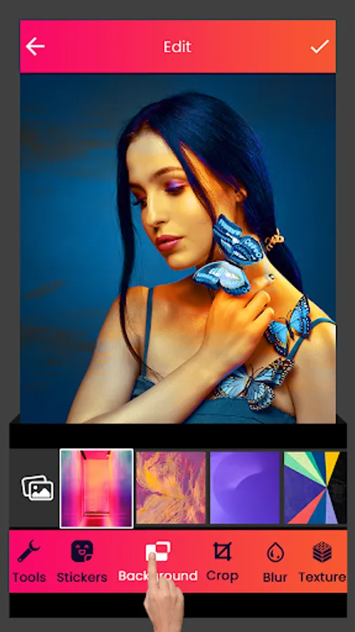 You can Show your creativity with photo editing tools; With New effect, stickers ,Backgrounds ,Resizing Photos,some magical filters also.