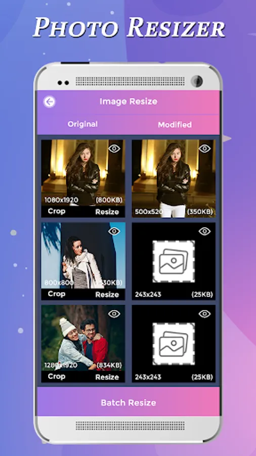 2 Photo Resizer shows the selected Photos with crop and Resize Option.