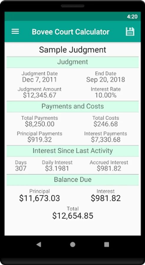 Keep track of payments, costs after judgment, portion of payment applied to interest, and portion of payment applied to principal for the duration of the judgment.