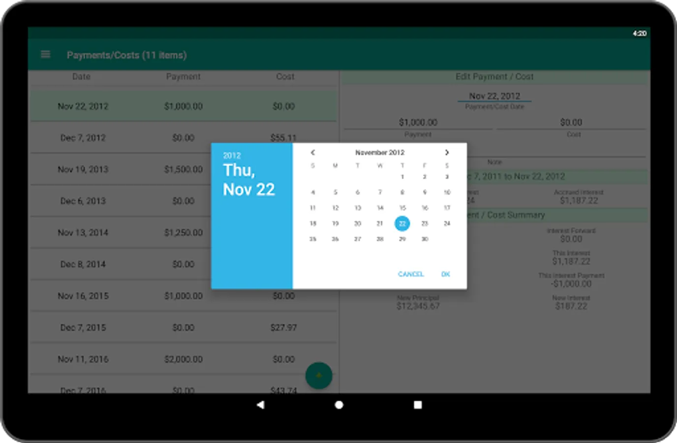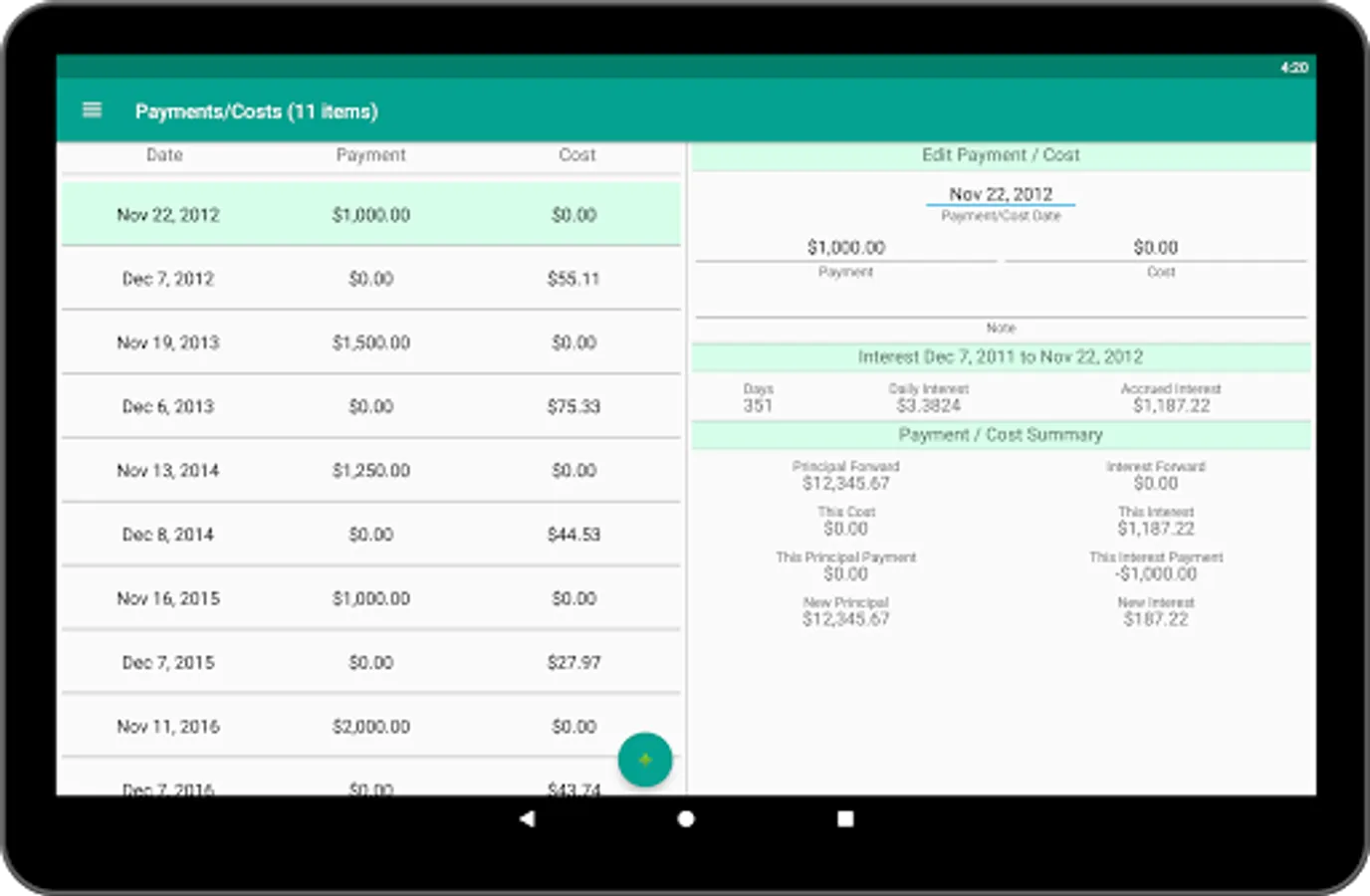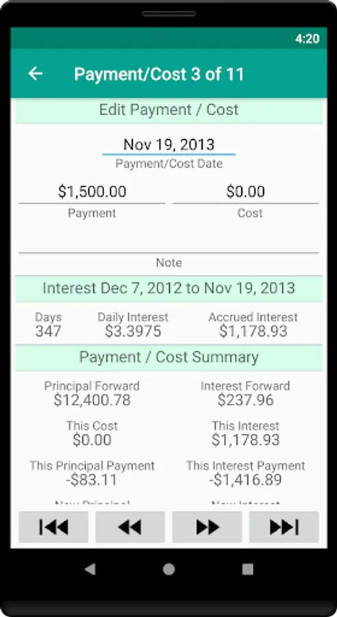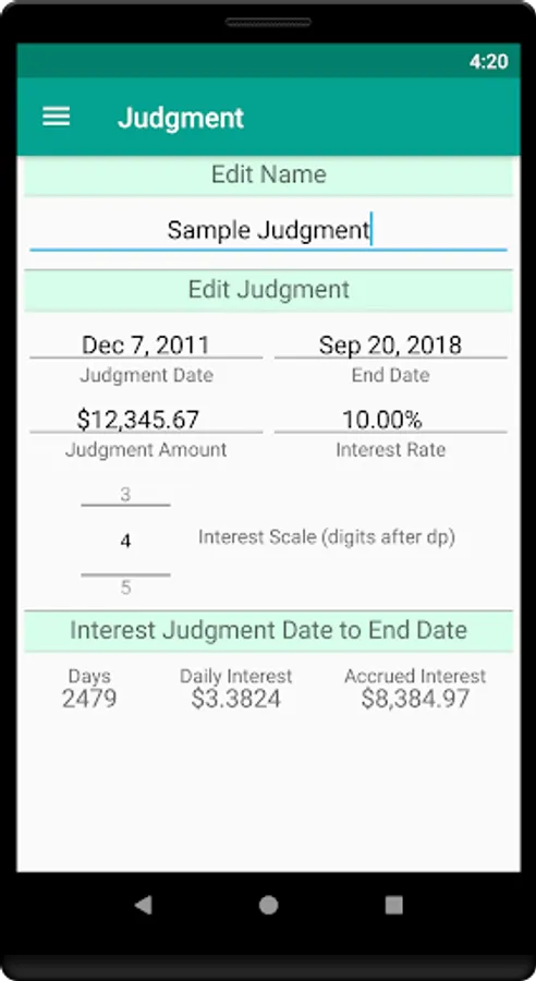 Accurately calculate accrued interest based on jurisdictional rules for interest rate and interest rounding (digits after decimal point).