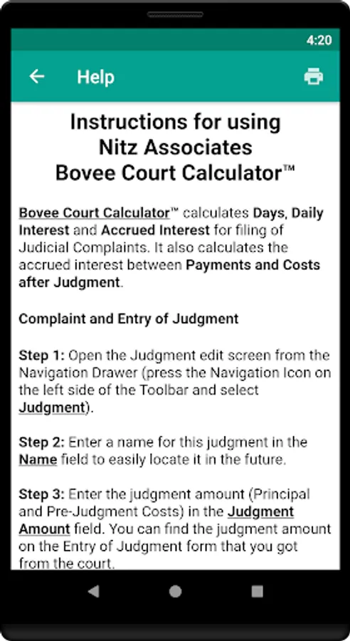 Calculate accrued interest and interest per day for filing of judicial complaints.
