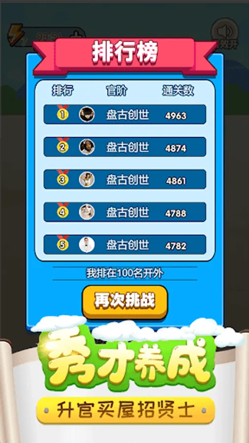 17. Super simple gameplay mode, through different answers to promote the official position, soaring official position is displayed;