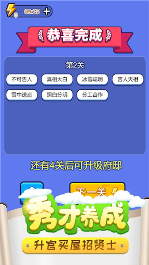16. Fill in the blanks with traditional Chinese idioms, massive level design challenges, and successfully unlock different houses to live in;