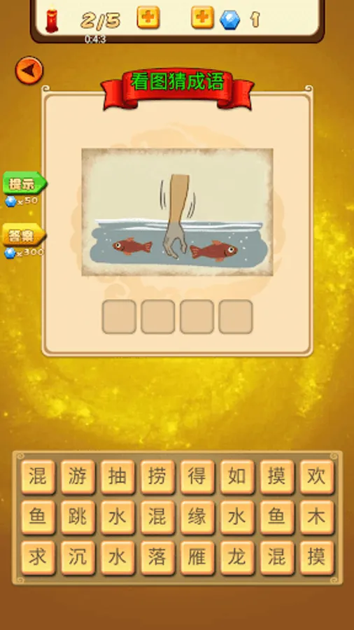 1. The game interface is composed of different horizontal and vertical spaces. You need to fill in the space in the space so that it is an idiom in both horizontal and vertical directions.