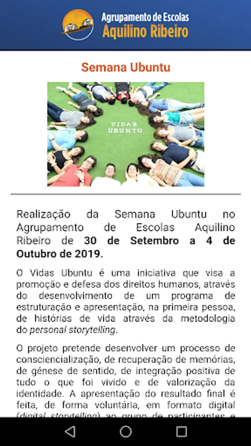 Take advantage of the smartphone in your hand and by installing the “Aquilino Ribeiro Mobile” App you get a closer proximity to communication, access to information and perception of events / global opinion conveyed in the School Grouping.