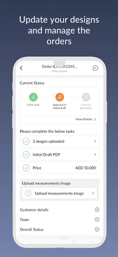 Update the status of the order right from your phone. Inform the customers about meeting time, your arrival, and draft uploads at the click of a button.