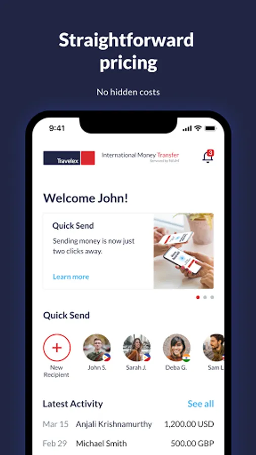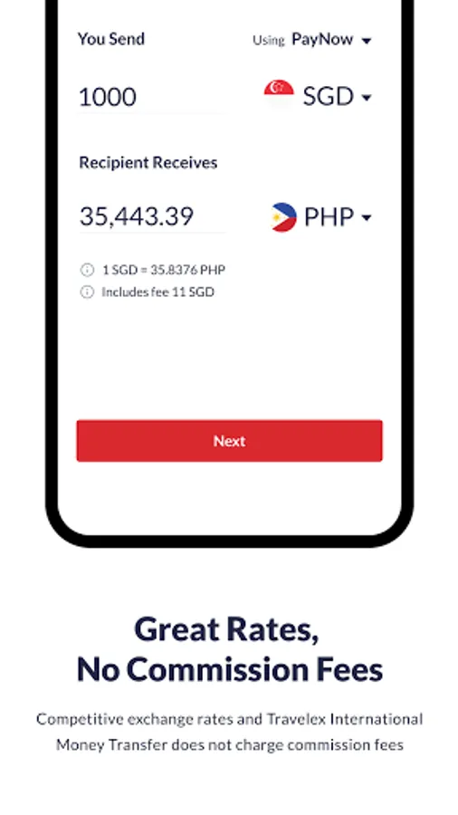 Competitive exchange rates and Travelex International Money Transfer does not charge commission fees